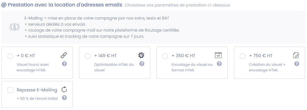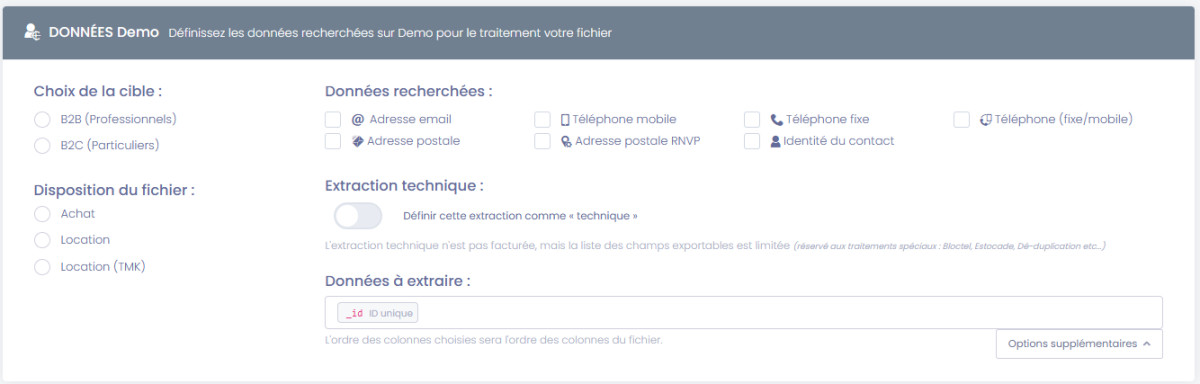 Si l'option " extraction technique " n'a pas été sélectionnée, les champs à extraire seront facturés selon la grille tarifaire correspondant à la sélection (usage, canaux ...).